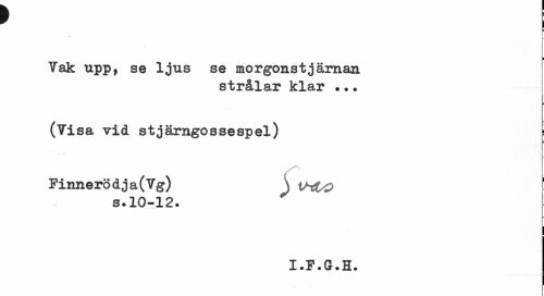 //// 9 //// i //// Tak upp, se ljus se morgonstjärnan //// strålar klar •. ? //// (Visa vid stjärngossespel) //// Finnerödj a(Tg) ^ ! //// s.10-12. //// X *F. G. H. ////