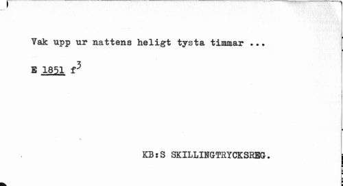 //// Vak upp ur nattens heligt tysta timmar //// v //// S 1851 f5 //// ¦ //// % //// KBsS SKILLINGTRYCKSREG. | ////