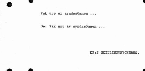 //// w //// Vak upp ur syndasömnen Se: Vak upp ay syndasömnen //// KB:S SKILLIHGTRYCKSREGr. //// A M ////