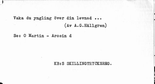 //// ¦ //// Taka du yngling över din levnad ? •. r //// (Av A.G.Hällgren) //// Se: O Martin - Arosin d //// KB:S SK ILL ING TRY CK SREG. //// I i //// I //// i ////