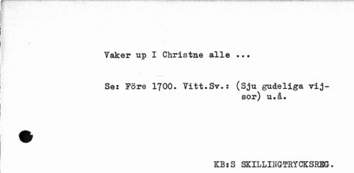 //// A" //// Yaker up I Christne alle ... //// Se: Före 1700. 7itt.Sv.: (Sju gudeliga vij- //// sor) u.å. //// KB:S SKILLIHGTRYCKSKEG. ////