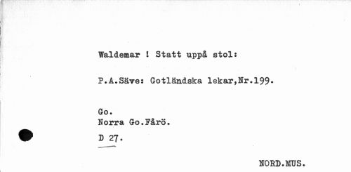 //// Waldemar ! Statt uppå stol: //// » //// P.A.Säve: Gotländska lekar,Nr.199* Go. //// Norra Go.Fåro. //// NOED.MUS. ////