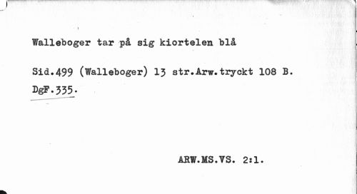 //// t //// k //// Walleboger tar på sig kiortelen blå //// Sid.499 (Walleboger) 13 str.Arw.tryckt 108 B. //// DgF.535. //// ? :»»» //// ÅRW.MS.VS. 2:1. ////