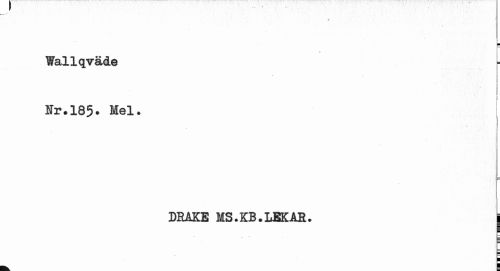 //// Wallqväde Nr.185. Hel. //// DRAKE MS.KB.LEKAR. | ////
