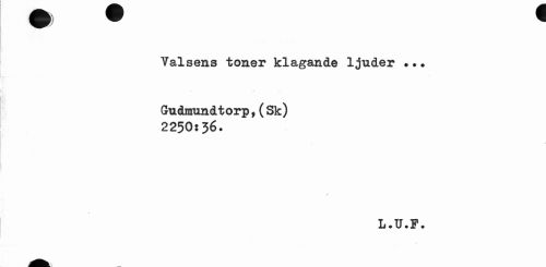 //// m //// Valsens toner klagande ljuder ?.• //// Gudraundtorp,(Sk) 2250:36- //// / //// L.U.F. ////