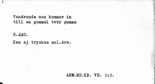 //// t //// 4 //// I //// Vandrande man kommer in till en gammal tvär gumma //// S.440. //// Kan ej tryckas enl?Årw. //// • ¦ //// * //// ARW.MS.KB. VS. 2:2. ////