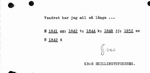 //// Vandrat har jag mil så långa ... //// E 1841 gg; 1842 t? 1844 k? 1848 jj? 18-52 zz Ä 1842 d //// KBsS 3KILLINGTEYGKSREG. ////