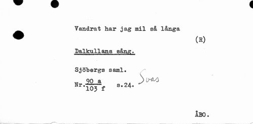 //// ^^ Vandrat har jag mil så långa //// Balkullans sång* Sjöbergs saml. //// ÅBO. ////