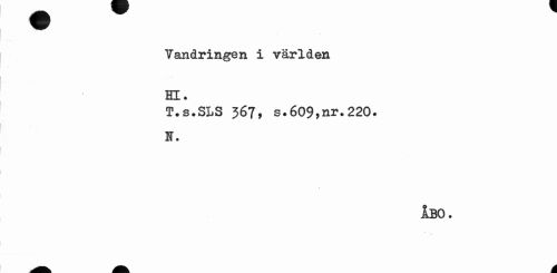 //// Vandringen i världen Hl. //// T.s.SLS 367, s.609,nr.220. H. //// ÅBO. ////