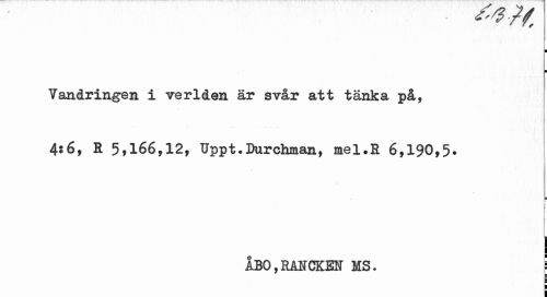 //// • ¦ ¦ //// Vandringen i ve riden är svår att tänka på, //// ... — , //// 4:6, R 5,166,12, Uppt.Durchman, mel.R 6,190,5. //// ÅBO,RÅHCKEN MS. j ////