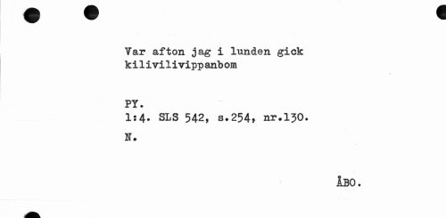 //// Var afton jag i lunden gick ki1ivi1ivipp anbom //// PY. //// Is4. SLS 542, s.254, nr.150. N. //// ÅBO. ////