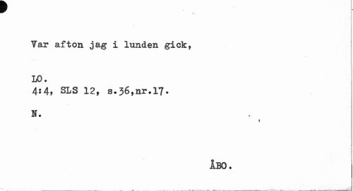 //// v //// Tar afton jag i lunden gick, LO. //// 4s4, SLS 12, s.36,nr.I?. N. //// 1 //// ÅBO. ////