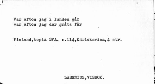 //// i //// Var afton jag i lunden går var afton jag der gråta får //// $ //// Finland,kopia SVA. s.H4»Kärleksvisa,4 str. //// I //// i ¦ //// LASENIUS,VISBOK. I ////