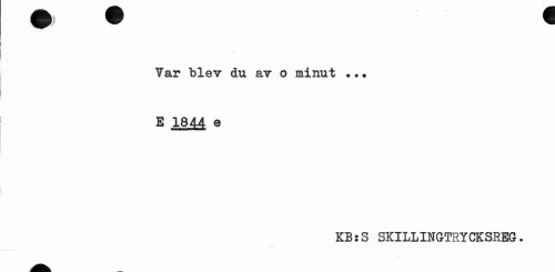 //// Var "blev du av o minut • • • //// E 1844 e //// KB:S 8KILLINGTRYCKSREG? ////