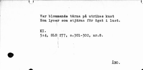 //// Tar blommande tärna på utrikes kust //// Hon lyser som stjärna for ögat i lust» //// t i //// Kl. //// 5$4, SLS* 277» s.301-302, nr.8. //// i //// i • //// \ » //// ' i //// ÅBO. ////