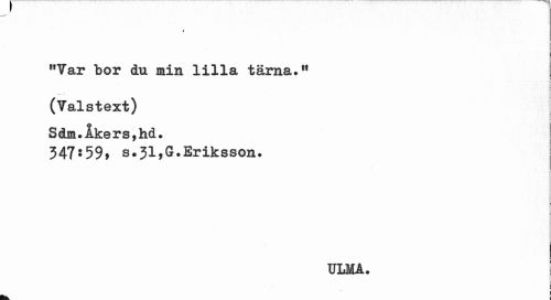 //// * //// I 1 //// I //// I //// f,Var bor du min lilla tärna.11 ! //// f //// ; //// (Talstext) Sdm.ikers,hd. //// 347$59, s#31>S.Eriksson. //// ULMA. //// i //// i*. ////