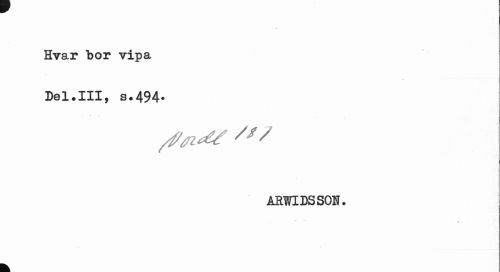 //// Hvar bor vipa Del.III, s.494» //// ARWIDSSOU. //// k ////