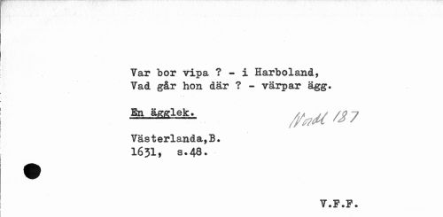 //// Var bor vipa ? - i Harboland, Vad går hon där ? - värpar ägg. //// Väs terlanda, B. 1631, s.48. //// V.P.F. ////