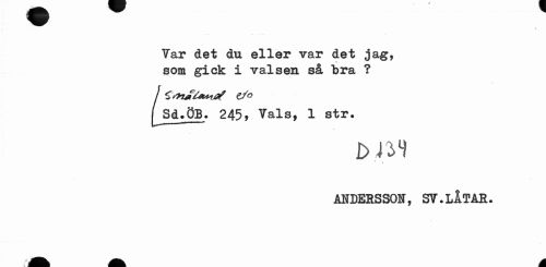 //// I //// Var det dm eller var det jag, som gick i valsen så bra ? //// ¦s //// J t/o //// (j3dJ3B. 245» Vals, 1 str. //// bM //// ' > //// ANDERSSON, SV.LÅTAR. ////