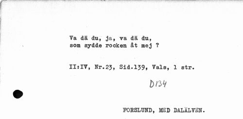 //// Va dä du, ja, va dä du, som sydde rocken åt mej ? //// IlsIV, Hr.23, Sid.139, Vals, 1 str. //// D/3V //// PORSLUND, MED DÅLÅLV3N. ////