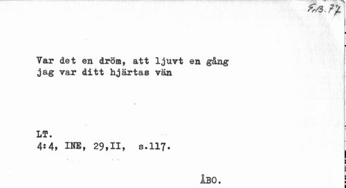 //// I I //// Var det en dröm, att ljuvt en gång //// jag var ditt hjärtas vän //// > //// ¦ //// LT. //// 4»4, INE, 29,11, s.117. | //// i 1 //// ÅBO. ////