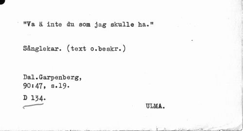 //// I //// u //// S i //// / i //// MVa ä inte du som jag skulle ha." //// i //// ; f //// i -i //// ^ i //// Sånglekar, (text o.beskr.) //// Dal. Garp enb e rg, 90:47, 8.19. //// D I34. //// <—¦—' ULMA. //// 1 //// ^^ ^ ^ ^ ^ ^ ^ 111» 1 ¦ ,. ¦ fr ^ -, ' — ////
