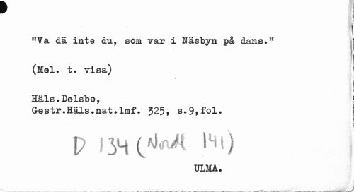 //// * / I //// ffTa dä inte du, som var i Näsbyn på dans.11 j //// (Mel. t. visa) ' //// ¦ ?/ i //// ¦ « i //// i //// Häls.Delsbo, //// Gestr.Häls.nat.lmf. J25, s.9»fol. //// \ //// p i^(d<n/i im) j //// ULM. //// > ////