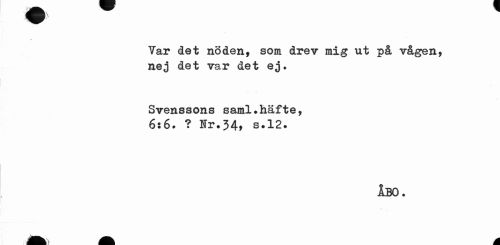 //// Var det nöden, som drev mig ut på vågen, nej det var det ej. //// Svenssons saml.häfte, 6:6. ? Hr.34, s.12. //// ÅBO. //// A M ////