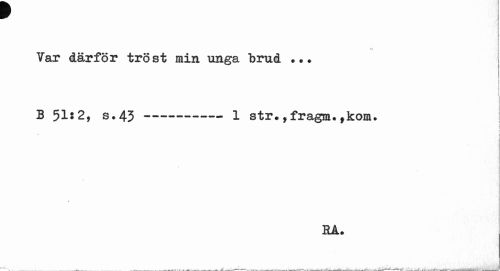 //// w //// I //// st //// Var därför tröst min unga brud ... I //// B 51*2, s.45---— 1 str.,fragm.,kom. | //// i //// I //// * //// HA. ////