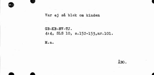 //// 9 //// Var ej så blek om kinden GB-KB-FV-TJ. //// 4:4, SLS 10, s.152-153,nr.101. M. a. //// ÅBO. ////