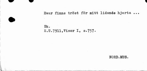 //// Hvar finns tröst för mitt lidande hjerta //// Sk. //// E.U.79H»Visor I, s.757. //// NORD.MOS. ////