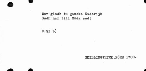 //// War gladh tu ganska Swearijk Gudh har till Möda sedt //// V.91 b) //// SKILLINGTRYCK,FÖRE 1700. //// ^^ A A ////