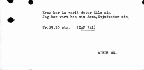 //// Hvar har du varit do ter ädla min ^^ Ja g har vart hos min Amma, St jufmoder min. //// Hr.25,10 str. (DgF 341) //// flMWMMMMMMMMMI //// WIEDE MS. ////