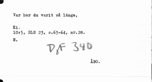 //// Var har du varit så länge, Ki. //// 10:5, SLS 23, s.63-64, nr.28. //// N. ^ ^ ^ //// ÅBO. ////