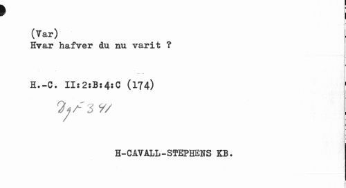 //// (Var) //// Hvar hafver du nu varit ? //// H.-C. IIs2:Bs4:G (174) 1 //// - //// 9/ //// H-CÅVALL-STEPHEIS KB. //// [ ////