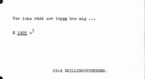 //// Tar icke rädd sov trygg hos mig ... B 1905 o5 //// c i //// KB s S SKILLINGTRYCKSHEG. //// k ////