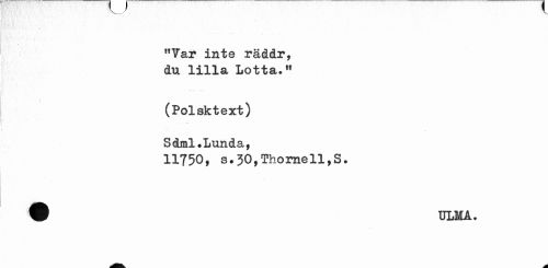 //// "Var inte räddr, du lilla Lotta." //// (Polsktext) Sdml »Lunda, //// 11750, s•30,Thorne11,S. //// ULMA. ////