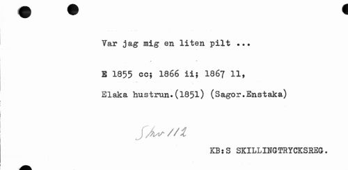 //// Tar jag mig en liten pilt ? //// * v //// E 1855 cc; 1866 ii; I867 11, Elaka hustrun.(1851) (Sagor.Enstaka) //// //i //// KB:S SKILLINGTHYCKSREG. ////