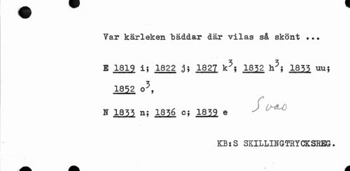 //// Var kärleken bäddar där vilas så skönt ... //// E 1819 i; 1822 ji 1827 k5j 1852 h5; 1855 uu; 1852 o5, //// r //// K 1855 n; 1856 c; 1859 e //// KBsS SKILLINGfRYCKSREG. ////