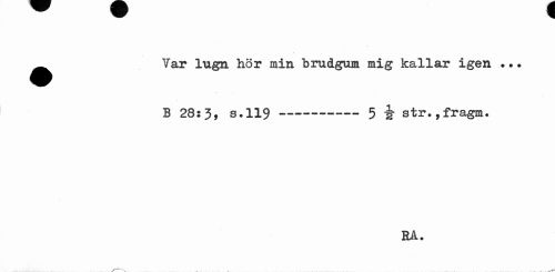 //// ^^ Var lugn hör min brudgum mig kallar igen ? •. //// B 28:J, s.119---5 i str.,fragsu //// KA. //// ...— ////
