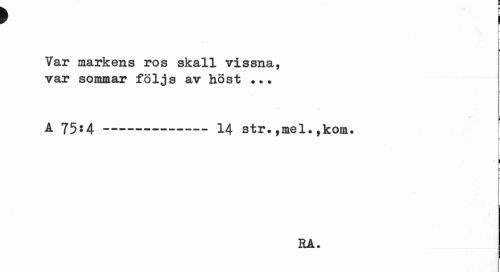 //// t //// f 1 //// Var markens ros skall vissna, var sommar följs av höst ... //// A 75*4---14 str.,mel.,kom. //// b //// RA. I //// I ////