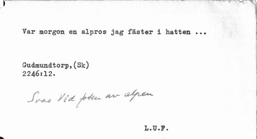 //// / . •1i«v ¦ I //// Var morgon en alpros jag fäster i hatten . •• //// Guåmmn&torp,(Sk) 2246:12. //// JU. ru //// L.U.F. ////