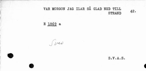//// VAR MORGON JAG ILAR SÅ GLAD NED TILL //// STRAND 4 * //// E 1869 a //// JlMJ //// 'Hk //// ^ S.V.A.S. ////