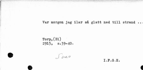 //// Var morgon jag ilar så glatt ned till strand Torp,(Dl) //// 2915, 8.39-40. //// X ?]? • G. H • ////