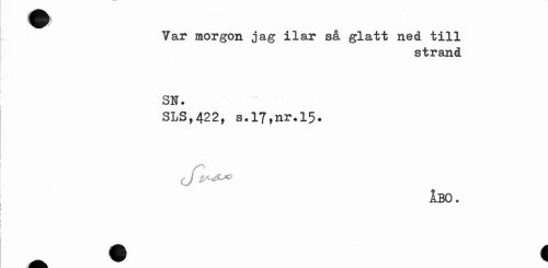 //// ... //// Var morgon jag //// x X sr så glatt ned till //// strand //// SN. //// SLS,422, s.17,nr.15. //// ÅBO. ////