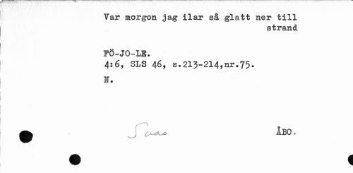 //// Var morgon jag ilar så glatt ner till //// strand //// FÖ—JO—LE• //// 4:6, SLS 46, s.213-214,nr.75. H. //// ^tx^o ÅBO. ////