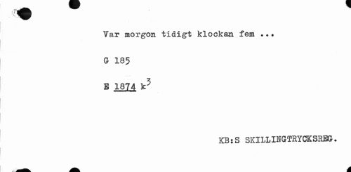 //// Var morgon tidigt klockan fem ... //// G 185 B 1874 k5 //// KB:S SKILLINGTRYCKSREG. ////