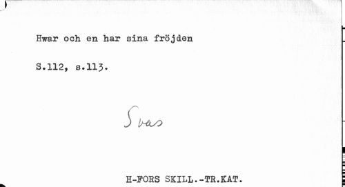 //// m //// Hwar och en har sina fröjden S/112, s.113* //// S Hsi //// i //// H-FORS SKILL. -TR.KÅT. f ////