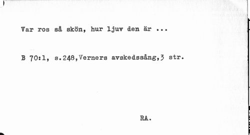//// Var ros så skön, hur ljuv den är B 70:1, s.248,Verners avskedssång,3 str. //// HA. i //// ¦ //// i ////