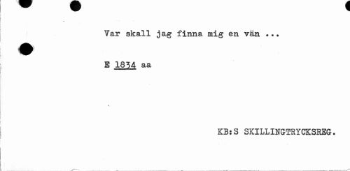 //// » ' //// Var skall jag finna mig en vän ... E 1834 aa //// KB:S SKILLINGTRYCKSREG. ////